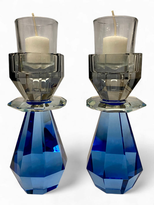 Modern Cut Candle Holder in Cobalt/ Smoke